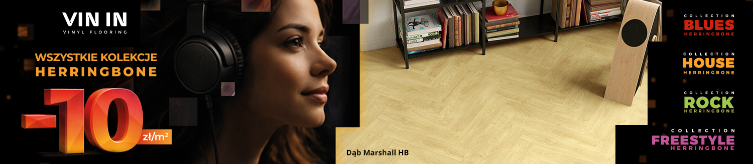 Nadaj wnętrzu rytm w promocyjnej cenie i skorzystaj z promocji VIN IN na wszystkie podłogi HERRINGBONE! Teraz kupisz je w naszych salonach w korzystnej cenie -10zł/m2! Wybierz jedną z czterech wyjątkowych kolekcji i odmień charakter swojej przestrzeni.